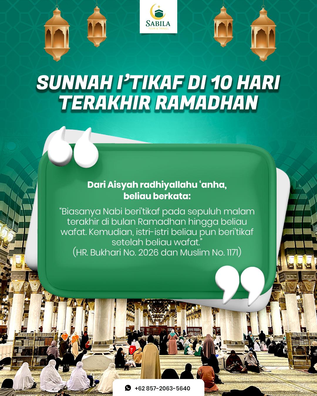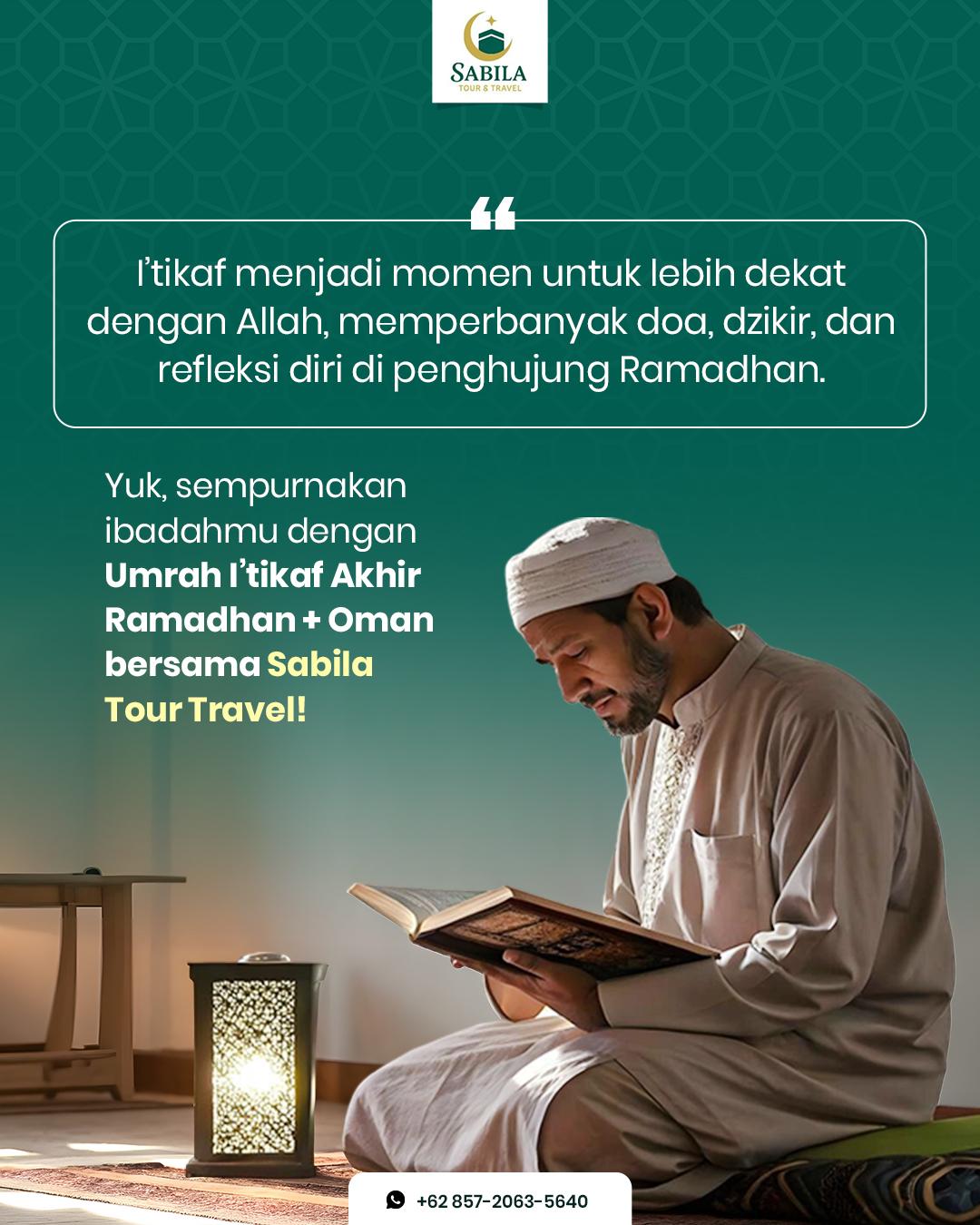 Kesempatan emas buat deketin diri sama Allah, raih ampunan dan keberkahan Lailatul Qadar. 💫 Yuk, pertimbangin Umrah I'tikaf Sabila Tour Travel!